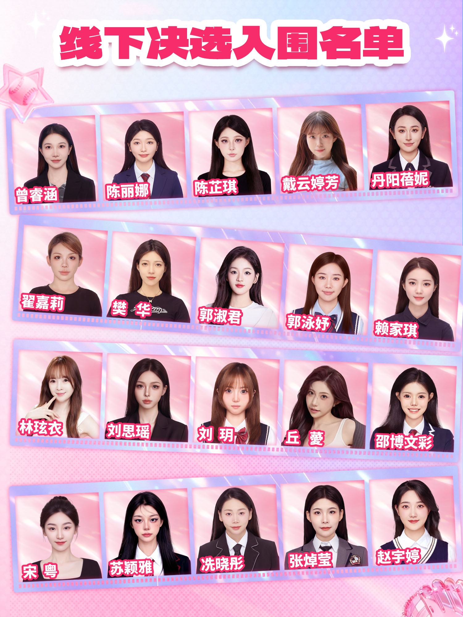 为了让吧友更加熟悉参加评选的Girls,我们将分成四组向吧友们做更详细的介绍,今天是A组:曾睿涵、陈丽娜、陈芷琪、戴云婷芳和丹阳蓓妮。