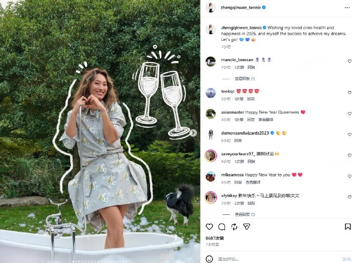 郑钦文写道:愿我的亲朋好友2026健康幸福,愿我自己成功实现梦想。加油!