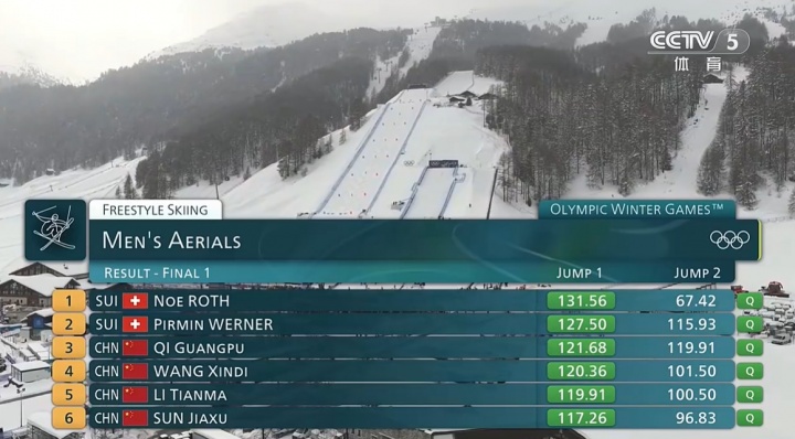 第一跳过后,齐广璞121.68分位列第三、王心迪120.36分位列第四、李天马119.91分位列第五、孙佳旭117.26分位列第六。最终齐广璞、李天马、孙佳旭、王心迪凭借第一跳的成绩晋级决赛次轮。