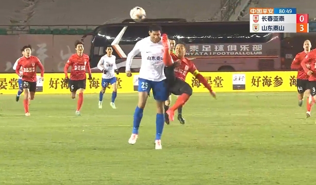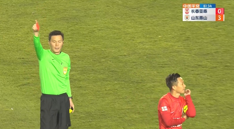 直播吧10月20日讯 中超第28轮,长春亚泰vs山东泰山。下半场第81分钟,刚刚替补登场不到3分钟的张力倒钩解围,结果直接踢中费莱尼面部,主裁第一时间给了黄牌,随后经VAR提醒到场边看回放改判直红。