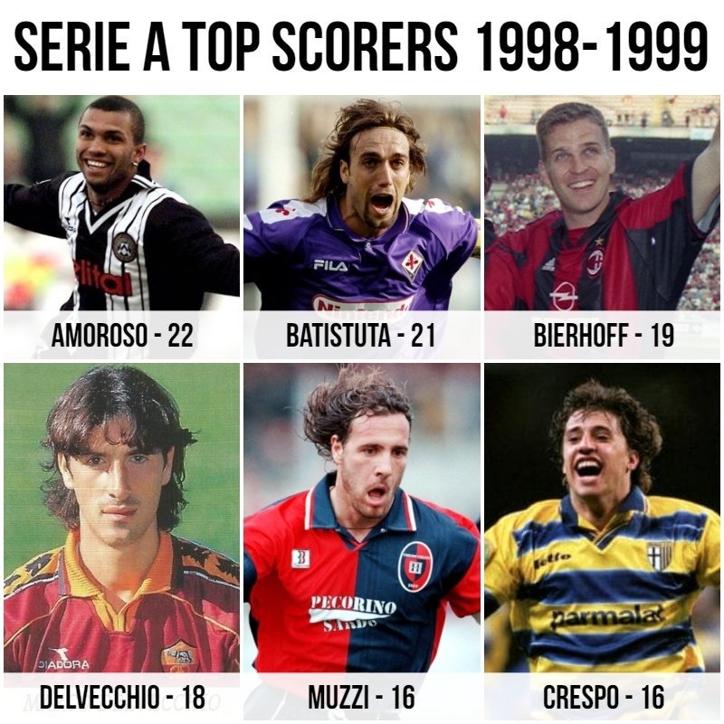 98/99赛季的意甲,巴蒂拿下了银靴,铜靴则是米兰的比埃尔霍夫。而射手榜第一的球员是效力乌迪内斯的阿莫罗索,你对这位球星是否熟悉呢?