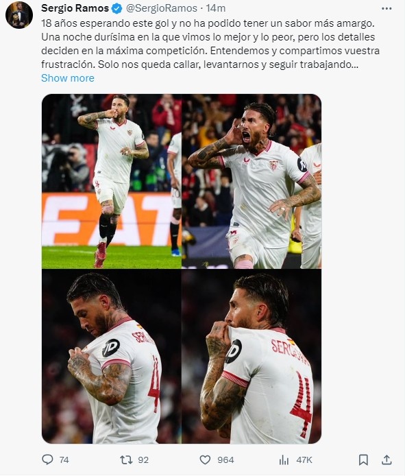 拉莫斯:“为了这个进球等了18年,不过这给我留下了苦涩的味道。