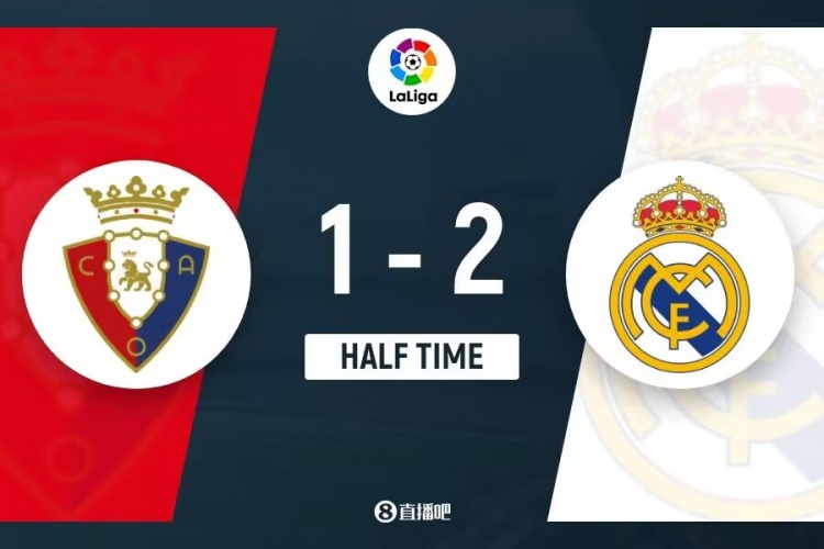 上半场补时3分钟,奥萨苏纳1-2皇马。