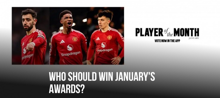 直播吧1月31日讯 曼联1月份的比赛已经全部结束,俱乐部公布了1月队内最佳球员的候选名单,分别是B费、阿玛德和利桑德罗。