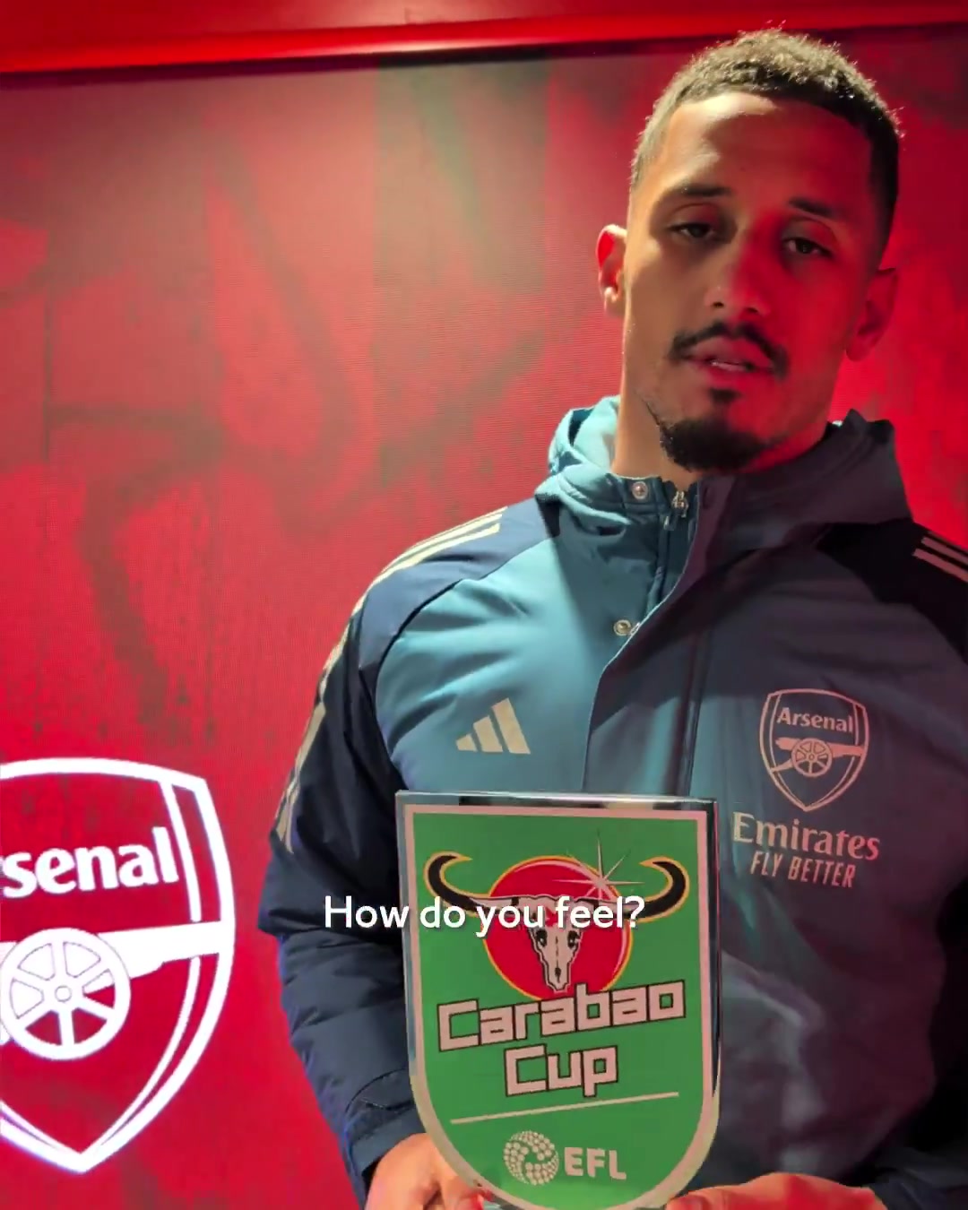 阿森纳官方社媒晒出萨利巴领取全场最佳奖杯的视频,萨利巴说道:“谢谢大家,我很高兴能够取胜,让我们加油,还有两场比赛(对阵切尔西两回合),然后我们必须赢下决赛。”