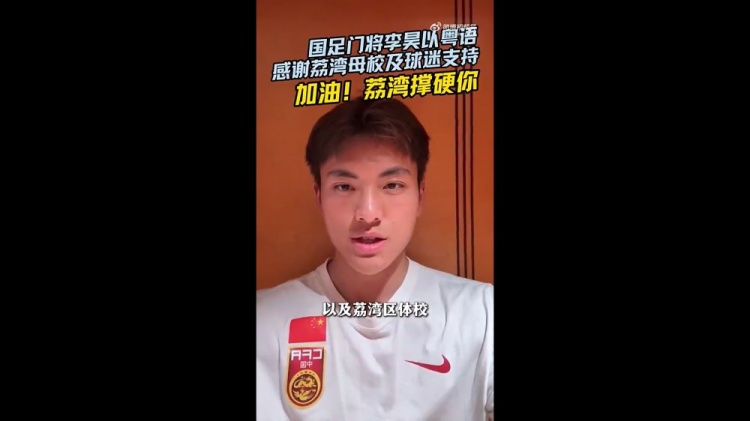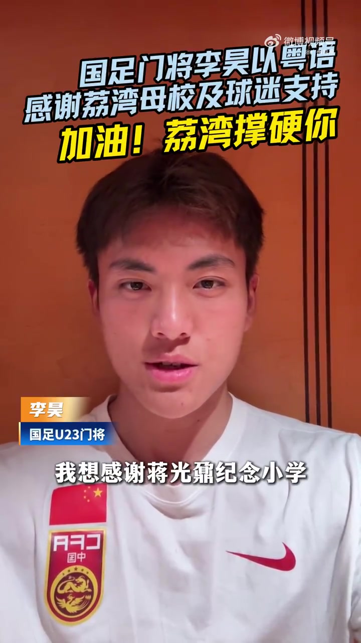 直播吧1月18日讯 《广州日报》晒出一段视频,U23国足门将李昊用粤语感谢广州荔湾母校和广州街坊支持。