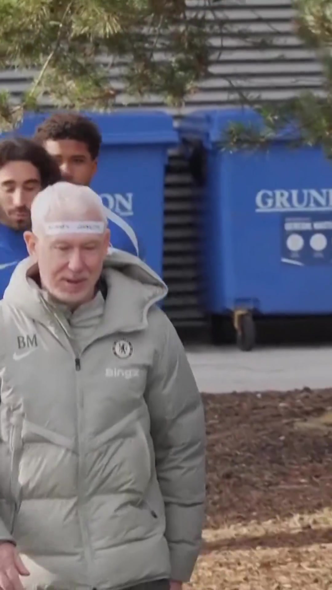 TNT社媒晒出视频,在切尔西的训练课中,理疗师麦卡洛克头上始终贴着“永远在线”的纸条。