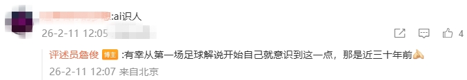 在评论区,詹俊回复网友时表示:自己尽力而为,肯定有不认识的;绝不划水;近30年前第一场足球解说开始自己就意识到这一点。