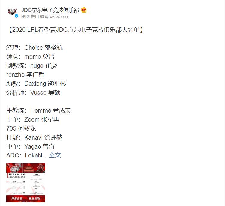 【2020 LPL春季赛JDG京东电子竞技俱乐部大名单】