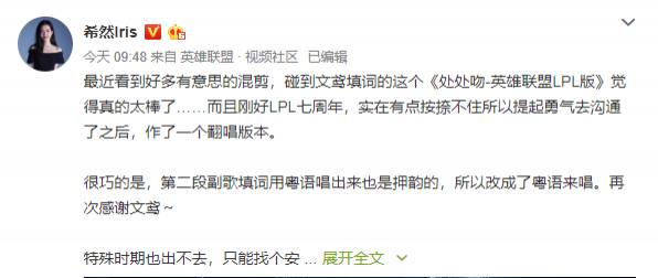 直播吧3月19日讯 近日恰逢LPL成立七周年,很多关于LPL的剪辑翻唱作品也出现在平台上。作为LPL官方三语主持人的希然也不甘寂寞,翻唱了一首《处处吻-英雄联盟LPL版》。