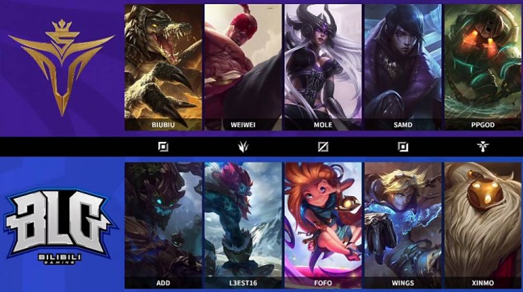 红色方BLG:巨魔、EZ、佐伊、巴德、大树