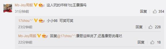 解说Joy与17shou也是在评论区互动:
