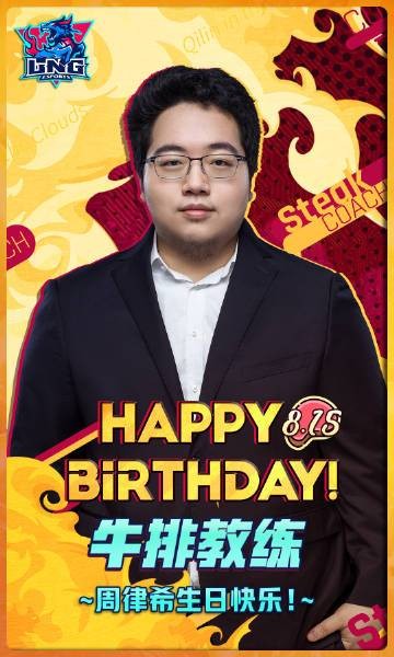 直播吧8月15日讯 今日,是LNG主教练Steak牛排周律希的生日,LNG官方微博也代表俱乐部全体,祝牛排教练生日快乐!