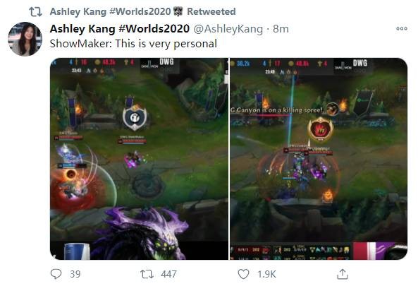 直播吧10月24日讯 S10淘汰赛第一日G2对战DWG的第一局比赛中,ShowMaker在团战中击溃G2后亮起了IG和FPX的队标,在S8和S9的世界赛上G2分别被IG和FPX淘汰,所以ShowMaker的这波操作简直就是杀人诛心!