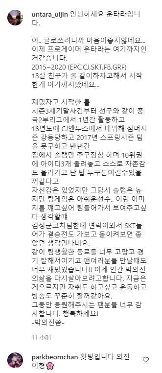 直播吧12月18日讯 前CJ、SKT、GRF上单选手Untara于昨日在直播中宣布退役,晚间通过INS发布长文回忆职业生涯。