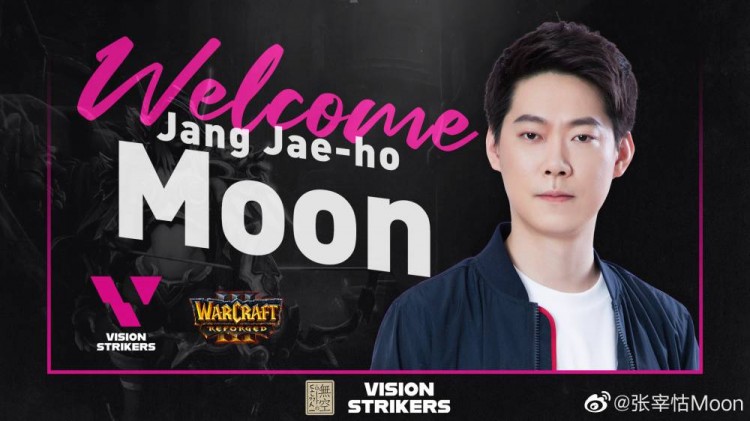 直播吧1月28日讯 今日,魔兽争霸3传奇职业选手张宰怙 Moon选手宣布加入Vision Strikers战队。