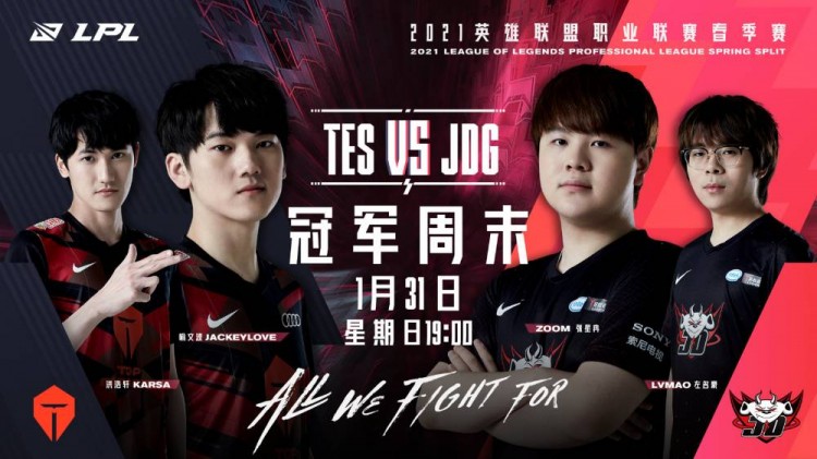 直播吧1月31日讯 LPL春季赛正如火如荼的进行中,今日19:00将迎来TES对战JDG的比赛。赛前官方发布双方对战海报,去年春夏双王再对垒,谁能更胜一筹,敬请期待!