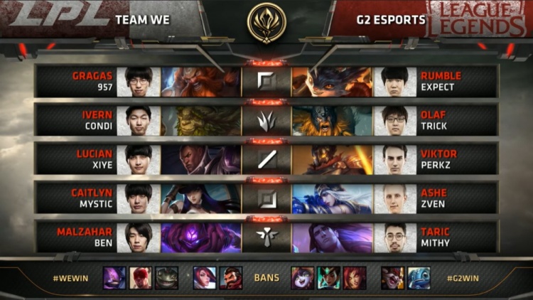 首局,此时还是中单的Perkz操刀维克托灵性支援,团战中沉稳输出G2击败WE拿下首局
