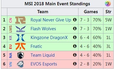 直进小组赛:Royal Never Give Up、Kingzone DragonX、Fnatic、Team Liquid