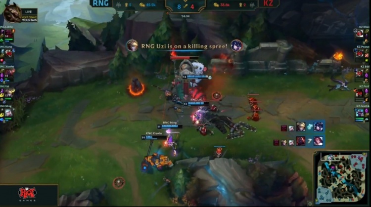 35分钟,RNG命悬一线,Uzi神操作打出3换3让RNG避免被一波!