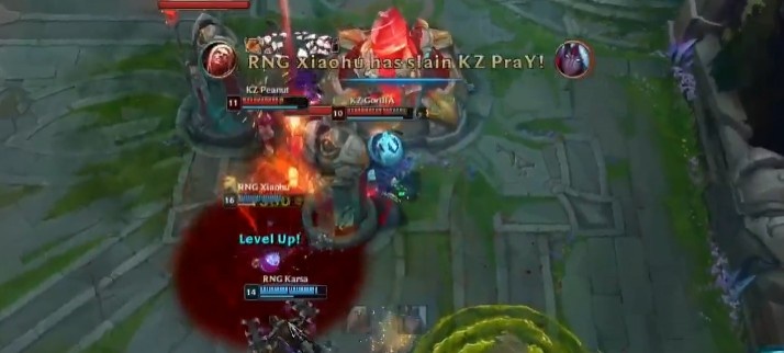 前期Karsa一波抓中助Xiaohu吸血鬼掌握线权,随后再联动xiaohu抓死Khan,再加上RNG下路天然全自动优势,RNG前期全线领先!