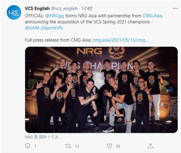 直播吧5月13日讯 今日美国豪门俱乐部NRG在亚洲的分布 CMG.ASIA官宣正式收购越南的春季赛冠军GAM,随后越南英文流的解说在推特上野证实此消息。