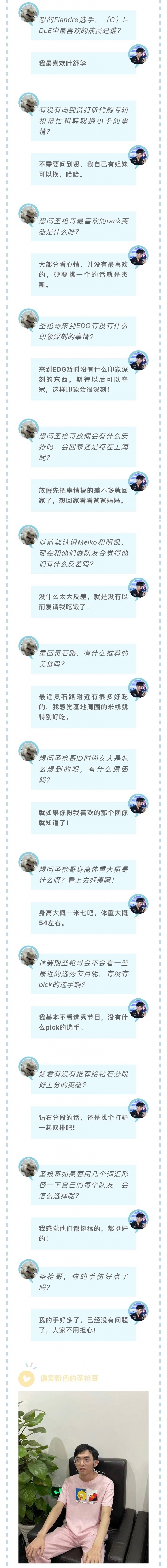 直播吧5月13日讯 今日EDG电子竞技俱乐部公众号发布——Flandre问答时间。对于来到EDG印象深刻的事情,圣枪哥表示,期待以后夺冠,这样印象会很深刻。