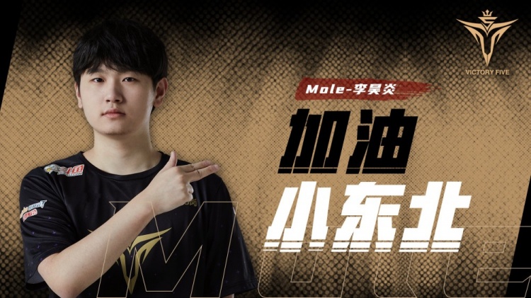 V5电子竞技俱乐部选手李昊炎(ID:Mole)自2019年5月加入V5担任中单位置。在队期间,他勤勉训练,谦虚上进,也是队伍里的开心果。从19年的夏季赛到如今,小东北经历过低谷,也绽放过光芒,从一个默默无闻的新人小将,到现在成为一个被大众熟知,能够带领队友走向胜利的中单选手。