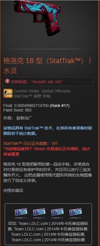 小ldlc崭新水灵格洛克,LDLC目前1.4w一张,市场估价预计3W.