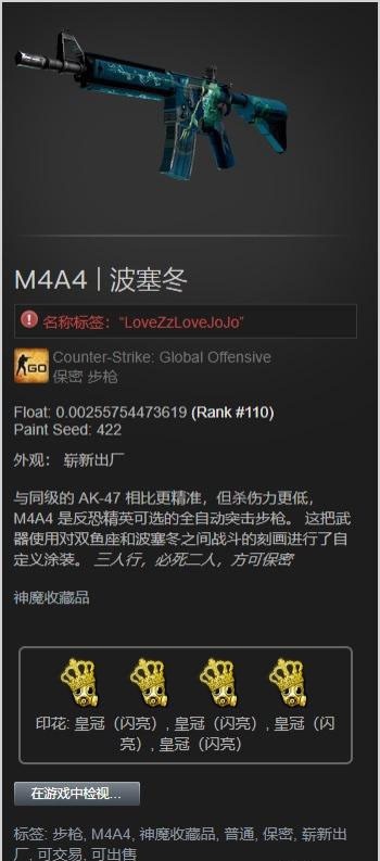 四联皇冠波塞冬,波塞冬作为CSGO已经不可再掉落绝版的皮肤,市场价也是十分高的。预计估价5W。