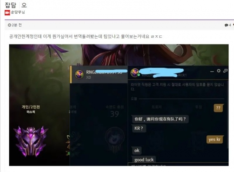 直播吧7月17日讯 此前韩服女主播“Soondangmu”通过辅助上分成功达到王者段位,成为了韩服第一位女性王者,后续有不少韩国职业选手因在直播时对该名女玩家发表了不当言论而发文致歉。