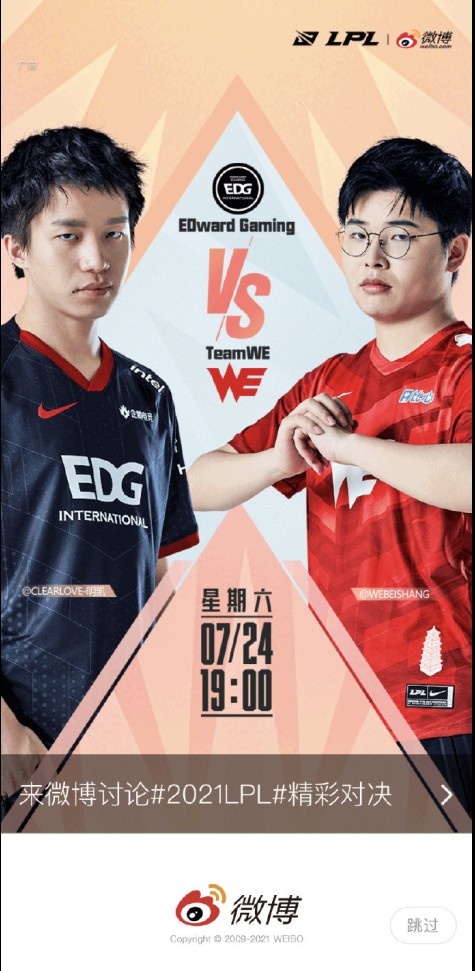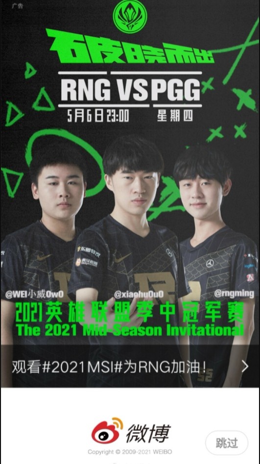 要知道上一个登上微博开屏广告的还是RNG夺冠MSI之时