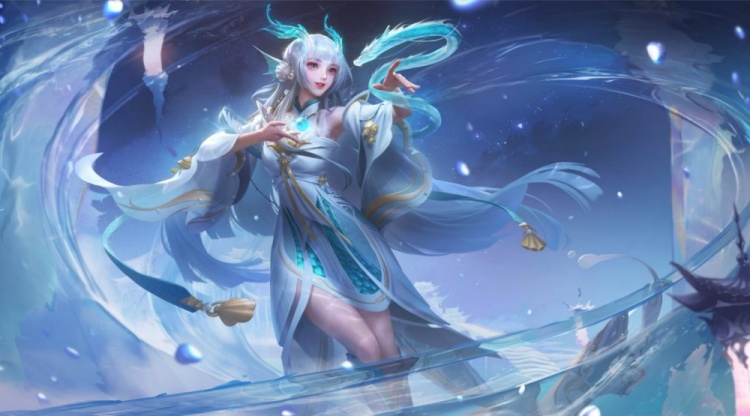 【技能特效】运用了大量“龙”与“云雾”的元素。一技能小青龙从天而降,命中后会缠绕其上,被束缚的敌人头上会出现贝壳形状的印记,和中国古典文化中神龙掌管水族的传说吻合。二技能龙珠飞出,四周烟云呈漩涡状涌进,继而龙珠爆炸,小青龙的虚影也缓缓消散。大招开启,龙女真身显现,小青龙化作百尺巨龙盘旋龙宫之上,乘彼扶摇,凌绝九霄。