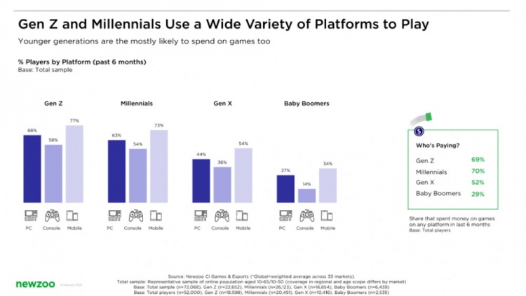 因此,年轻一代比以往任何时候都更加不依赖平台,他们通常跨多个平台玩游戏: