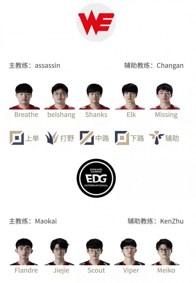 直播吧8月28日讯 LPL夏季赛季后赛将在明日开启败者组决赛,将由EDG对战WE,刚刚英雄联盟赛事官方正式发布了明日两支队伍的首发名单。