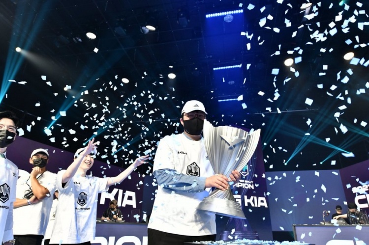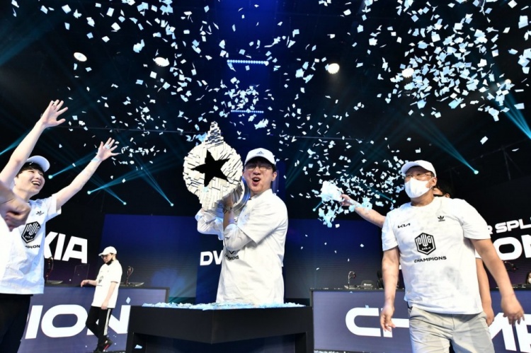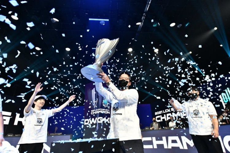 直播吧8月29日讯 在昨日的LCK夏季总决赛中,DK击败了T1取得了三连冠的好成绩;今天LCK官推发布了昨日DK捧杯的照片,“找到一些能给你带来快乐的事情,就像Ghost为他的教练kkOma扔纸屑一样。”