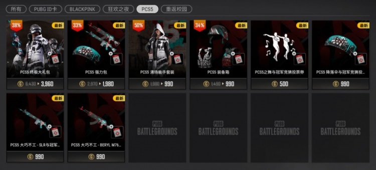 从最低氪金角度来看,本次皮肤更新大概100元左右就能拿下关键性的皮肤。37元优惠包+990G币PCS5皮肤