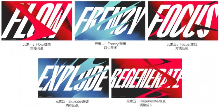 同时,联盟更以中国古典哲学中的“五行”——“金木水火土”五种元素为灵感,以这五种元素的特有属性,与LPL比赛中5种不同的战况及LPL赛区独有的竞技精神相结合,并一一对应,延展出五大代表性品牌元素。
