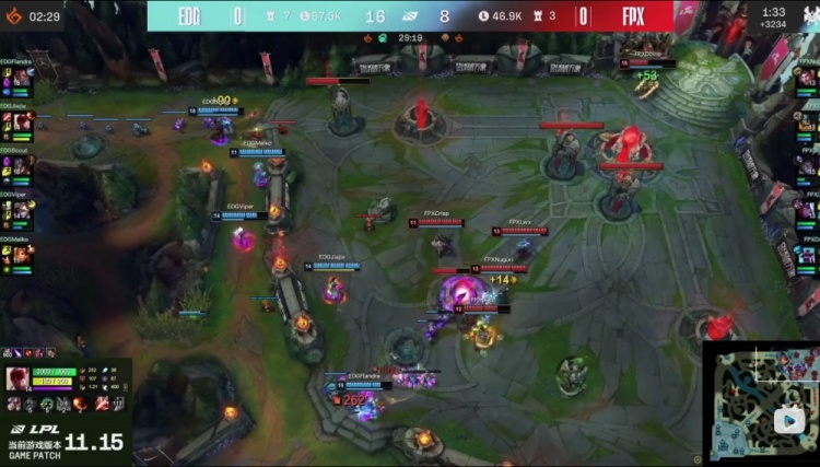 图注:顶部数据栏的颜色变化,将展示通过数据计算的实时队伍胜负优势
