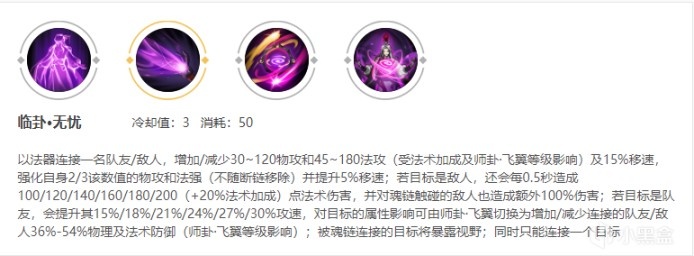 弱化也是可以考虑的,主要强在了cd短,只有90秒,而且明世隐带上弱化提升免伤,可以让链子更加持久(一旦明世隐死了,链子就没了,这是常识),一旦感觉狄仁杰站撸不过,需要队友支援,可以考虑换成黄色魂链多撑几秒。