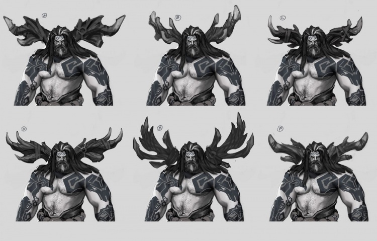 上次分享更新时,玩家表示自己喜欢毛发的呈现方式,但对鹿角则是两极分化。基于反馈我们进行了讨论,最终决定保留鹿角,因为它对乌迪尔的轮廓和辨识度提供了很好的区分,也很好的表现了其德鲁伊元素。当然,鹿角确实需要重新设计,毕竟其过于巨大,吸引了过多注意。因此,我们构思了一些较小的鹿角。