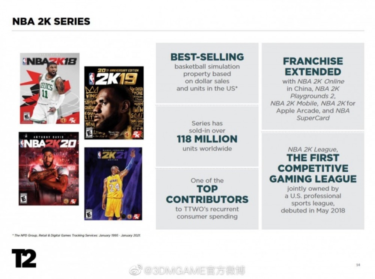 4.《NBA2K》系列全球销量超1.18亿份,是美国最畅销的篮球游戏。