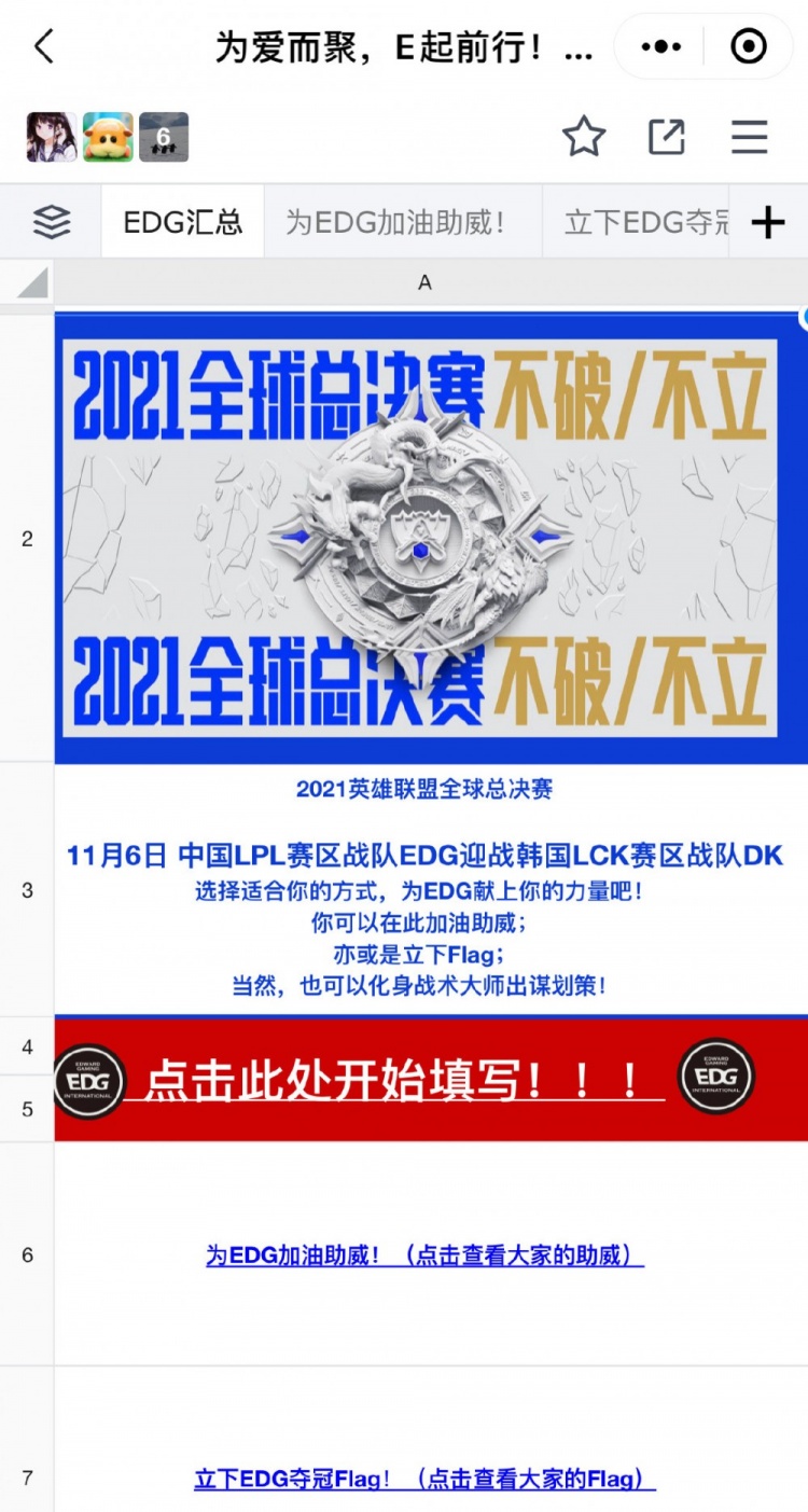 直播吧11月6日讯 英雄联盟全球总决赛终场即将开战!中国LPL赛区战队EDG即将迎战来自韩国LCK赛区的战队DK!面对这牵动人心的最后一战,高校内开始流传出来一份助威flag文档..
