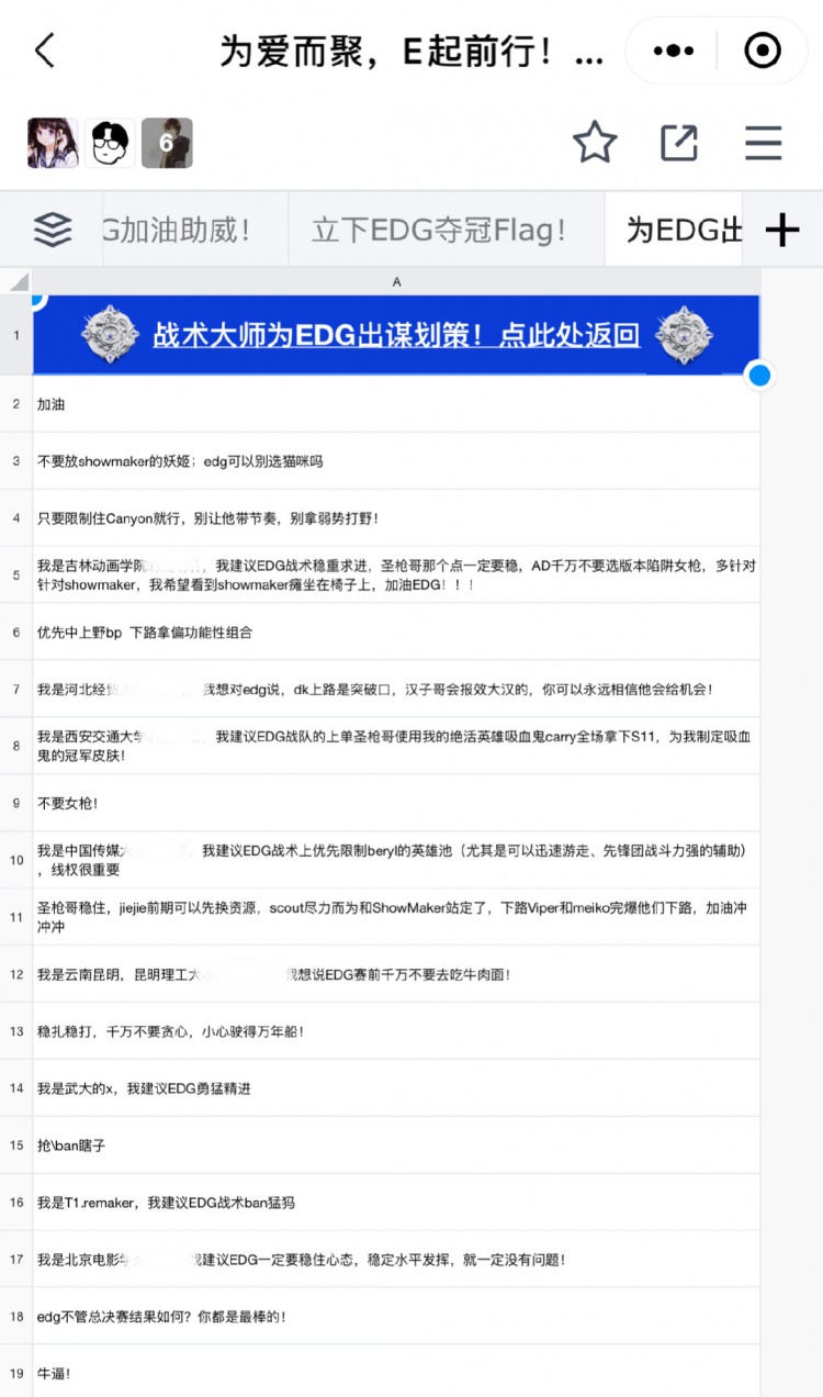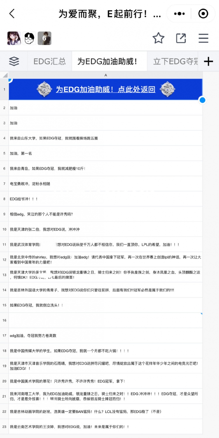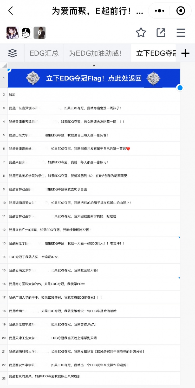 有同学要为宿舍洗一周袜子,更有的要绕操场跑77圈...相信EDG也感受到了大家寄予的希望让我们一起为EDG加油!也立下你的flag吧!