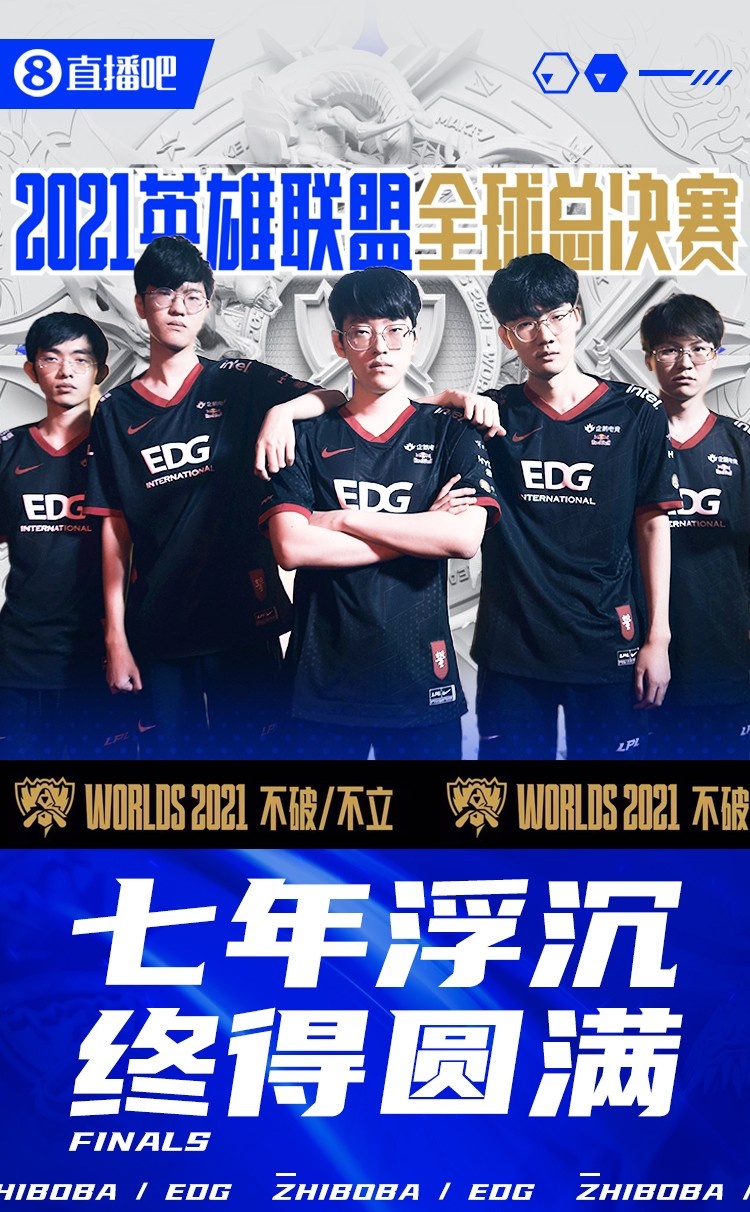 下图为直播吧制作的2021英雄联盟全球总决赛EDG夺冠海报