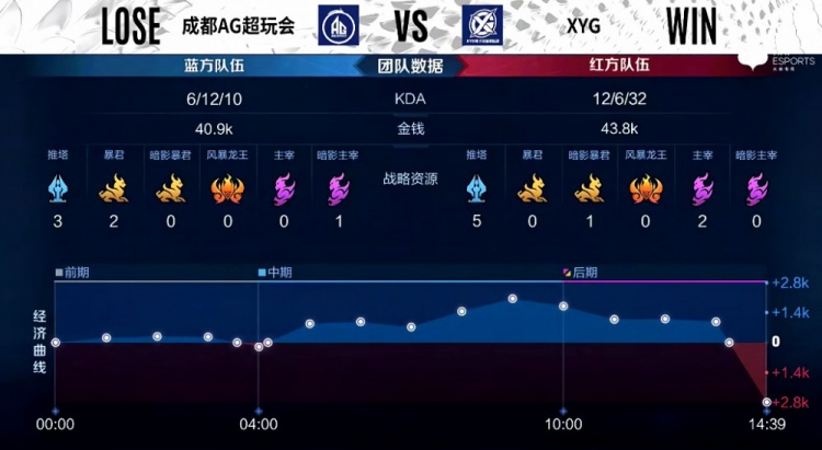 【13:50】双方下路开团,大乔残血大招拉人成功,XYG打出完美团战,0换4。一波推进拿下比赛。XYG2-1领先