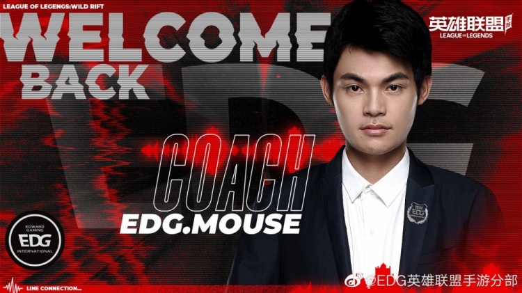 即日起,Mouse(陈宇浩)正式回归EDG电子竞技俱乐部担任EDG英雄联盟手游分部教练一职!