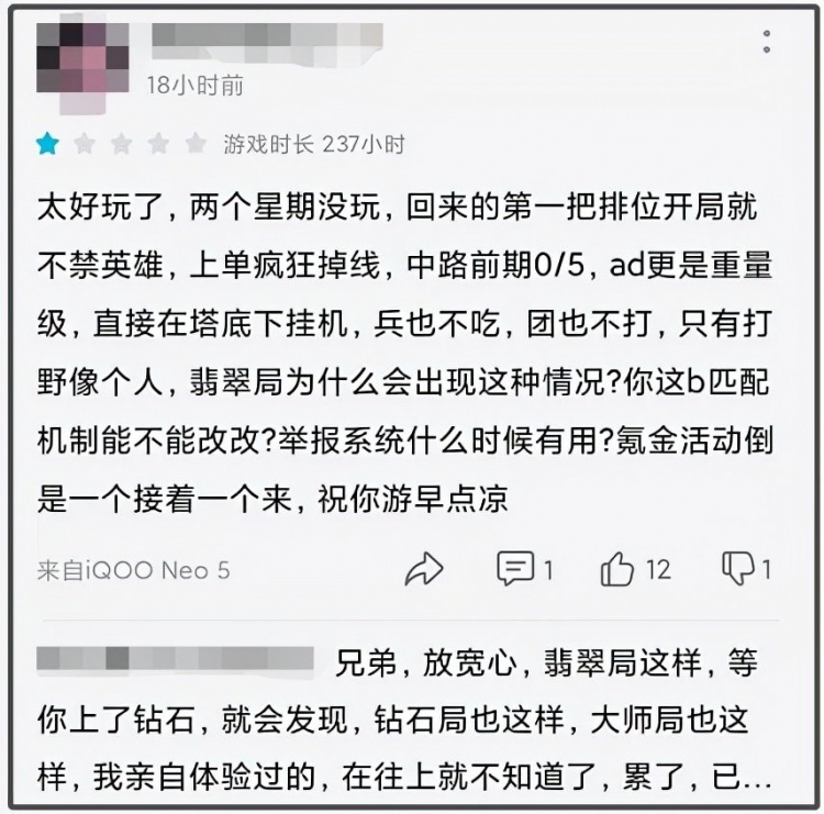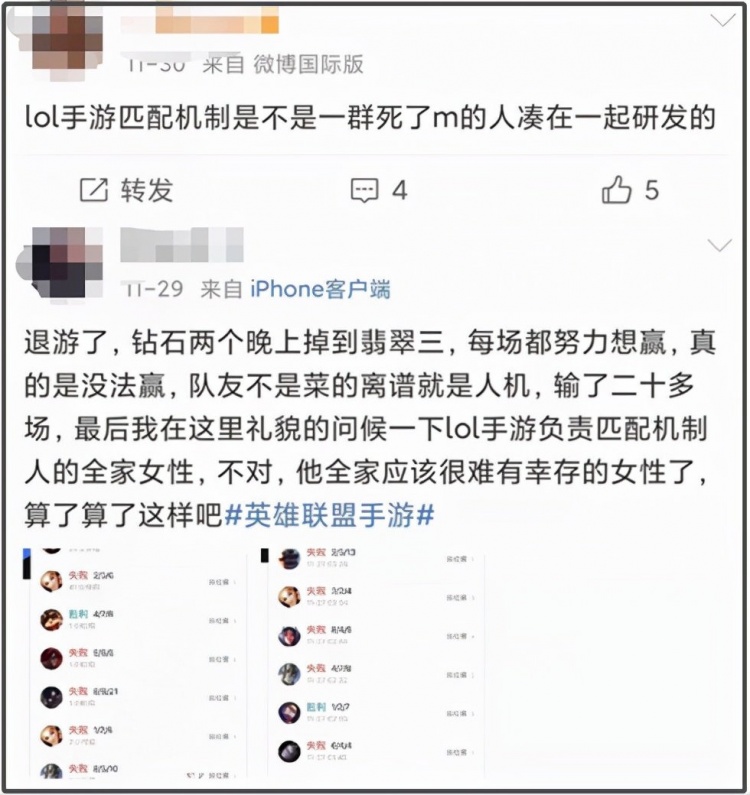 LOL手游不是单独现象,其他游戏里被匹配机制气到骂娘的玩家大有人在,只是LOL手游上线不久被讨论更多,匹配机制对胜负的影响也更加严重。