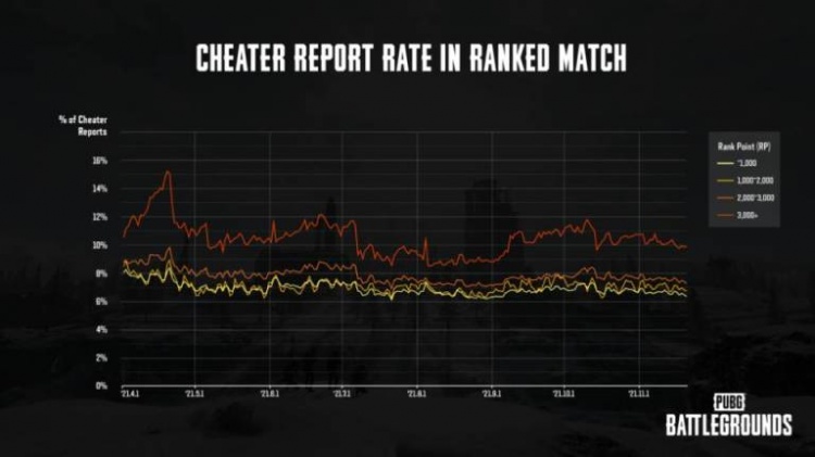 由于我们的努力,以非正常方式获得生存精通经验的玩家数量减少了约30%,而在高级排位赛中通过错误方法获得RP的玩家数量减少了约50%。随着改进的进行,玩家意识到他们不再能够逃脱作弊的惩罚,这些数字将继续减少。
