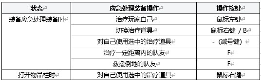 - 装备应急处理装备后,玩家可以对受伤的队友进行治疗。